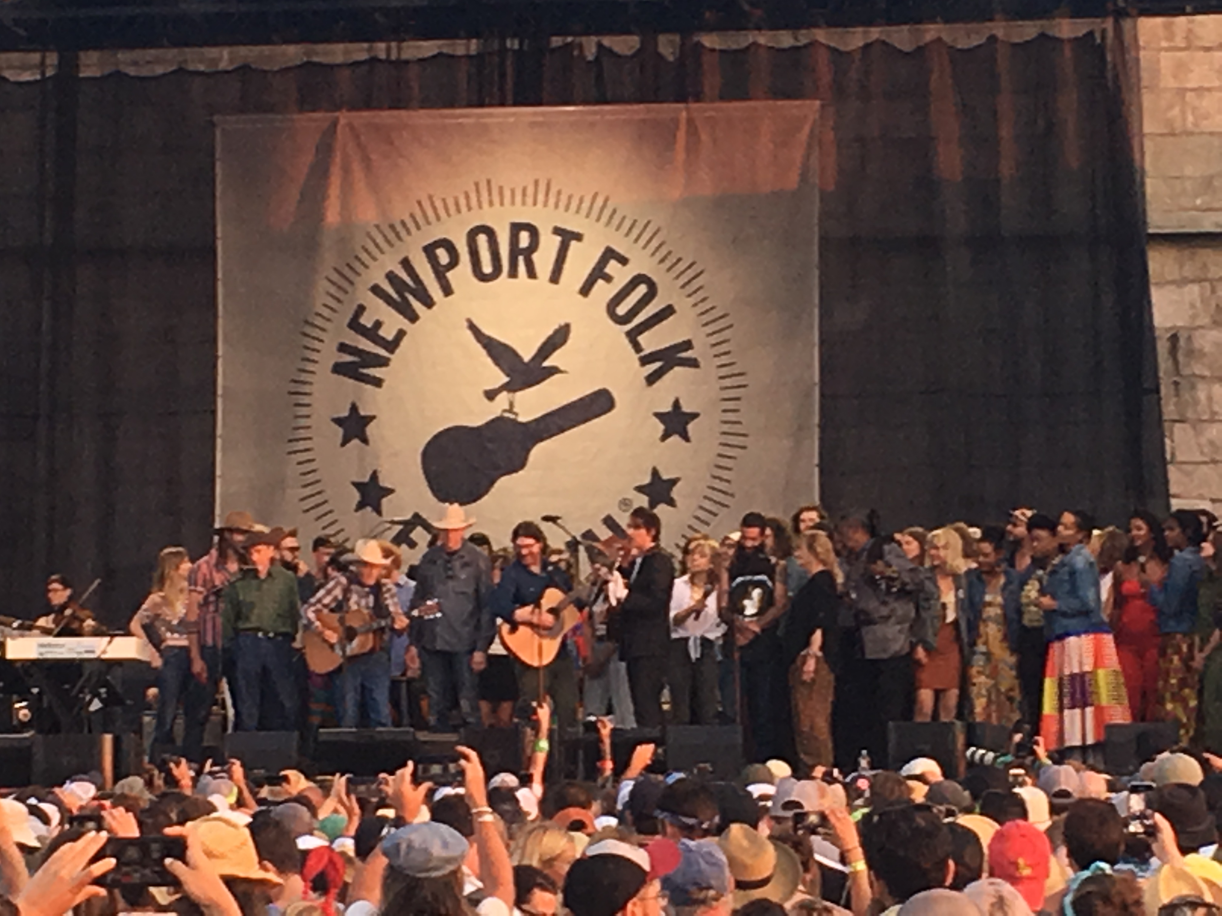 And the festival ended the only way it could have – with all remaining performers on stage. But they served mostly as chorus shouters to the unstoppable Ramblin’ Jack Elliott on (what else?) “Goodnight Irene.” For all the specificity that’s missing when performers relate Newport history – for all the times they stand at Fort Adams and remember something that happened in Freebody Park – it was odd how few times anyone referred to the fact that they were standing right where Seeger used to stand. I didn’t know Pete Seeger well, but I could feel his absence. And if I could picture the man, floppy hat, whispery voice and all, and tear up a bit, couldn’t everyone?